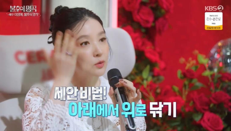 이영애는 피부 관리 비법을 묻자 "중요한 건 뭐든지 적당한 게 좋은 것 같더라. 운동, 음식, 스트레스 등 뭐든지 적당하게"라며 "세안할 때 리프팅 될 수 있도록 아래에서 위로 닦는다"라고 밝혔다.